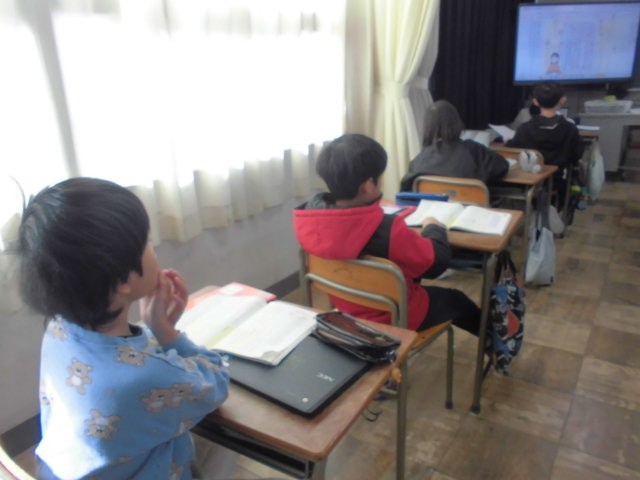 2時間目、3年生は国語、4年生は国語、5年生は理科でした。