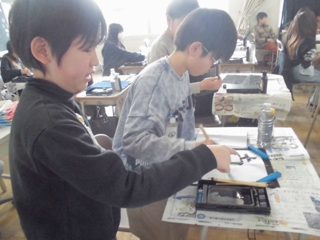 5年生は習字。今日はどんな字を書くのかな。