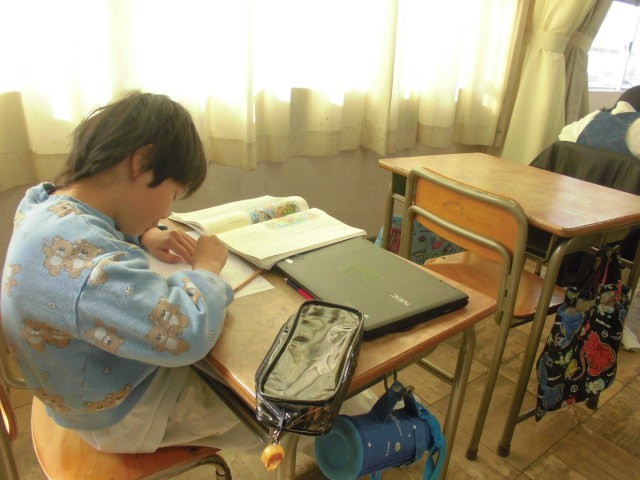 1年生は体育。見学なので職員室で過ごす時間です。