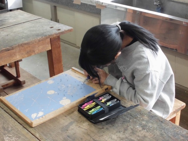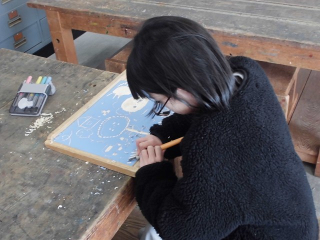 図画工作「ほってすって見つけて」【2月9日(月)4年生】
