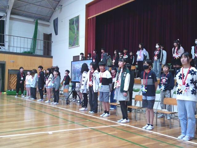 各学年からは、これまでの感謝を込めた出し物やプレゼントが贈られました。体育館は温かい拍手に包まれました。