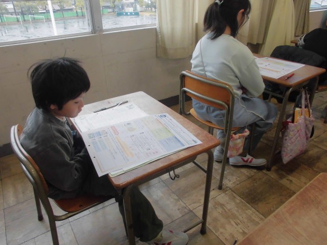 5年生は算数。図をかいて問題を理解しようとがんばっています。