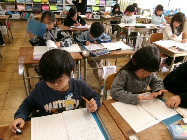 たし算、ひき算の復習をしました。たくさんの計算問題に取り組んでいました。考え方がしっかり身についているので、正解ばかりでした。