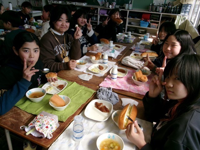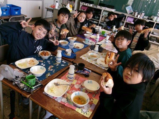 サンドイッチロールをいただきます:給食【3月11日(水)5年生】