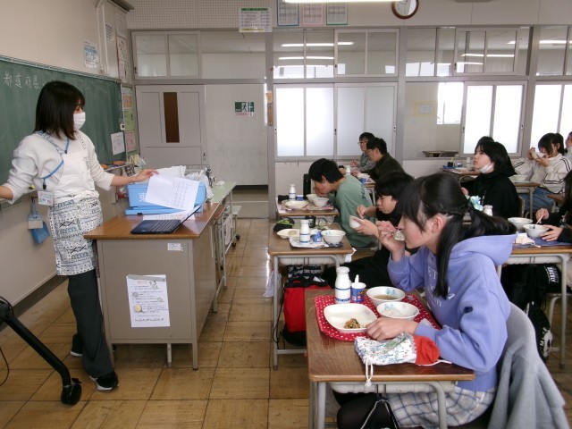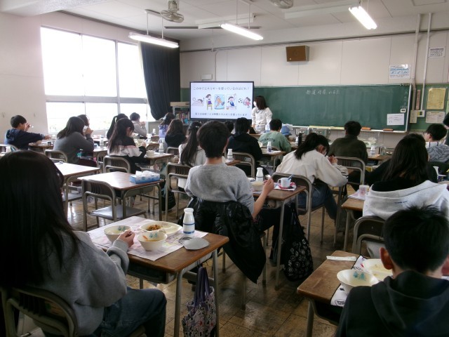 成長期に必要な栄養について、栄養教諭から学びました。自分にとって必要な栄養を知り、食事で意識してとっていきましょう。