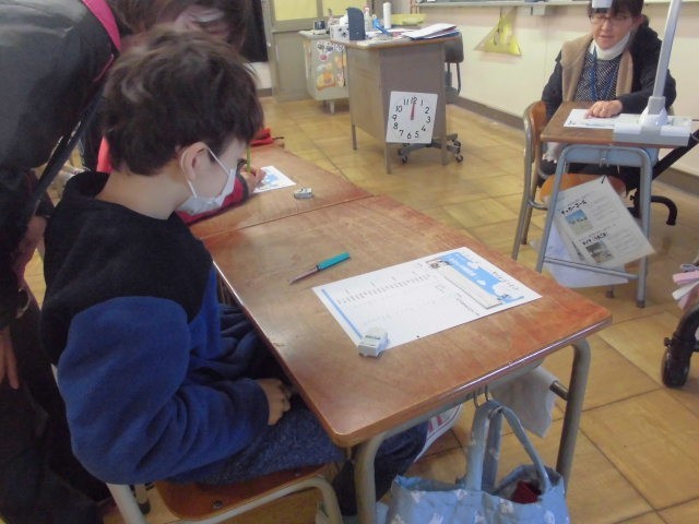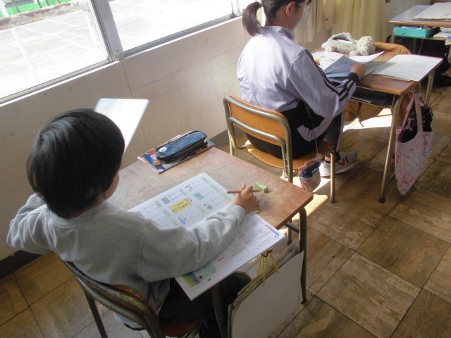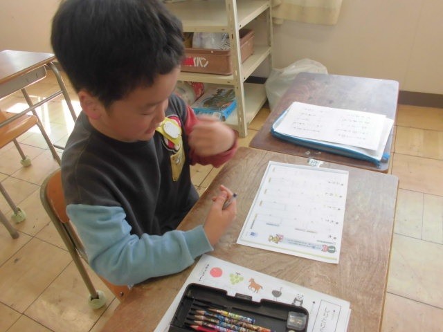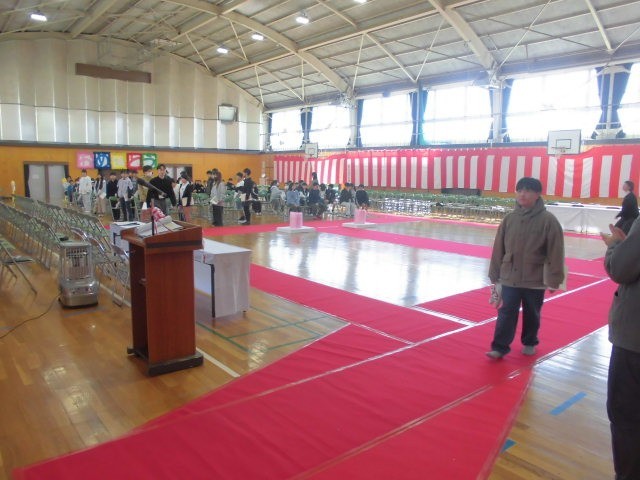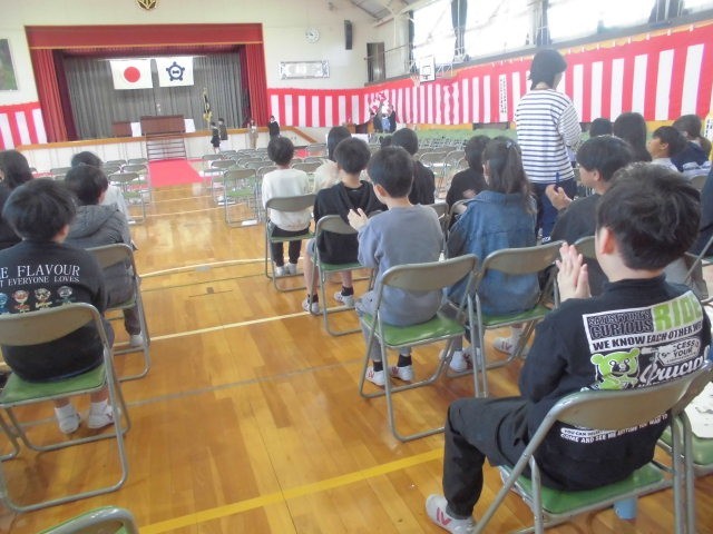 5年生は卒業式の練習。卒業生が入場のときは拍手です。