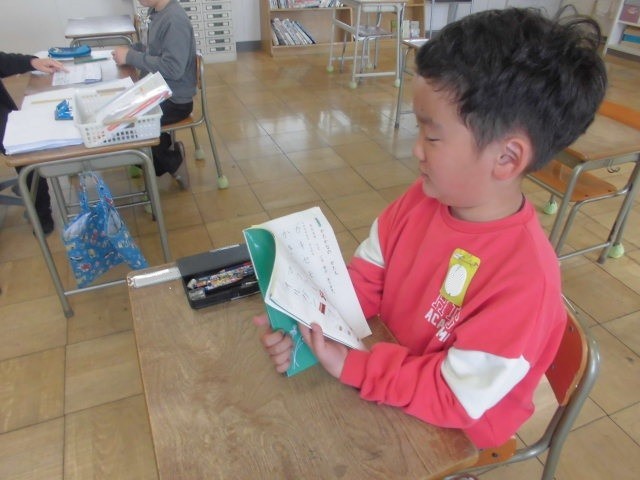 4年生は国語の教科書を見ていました、一年間しっかりと使いこんだ感じの教科書になっていました。