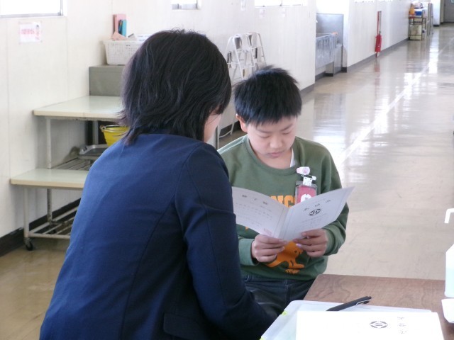 一人一人にあゆみが手渡されました。1年間のがんばりや成長を担任の先生とともにふり返り、新学年に向かう気持ちを高めている姿が見られました。
