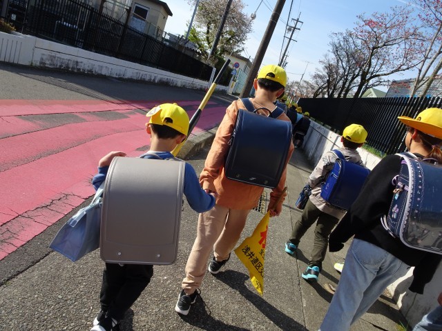 今日から、1年生から6年生まで全員での登校です。6年生が手をつないだり、目線を合わせて声をかけたりして、1年生に寄り添う姿がたくさん見られました。