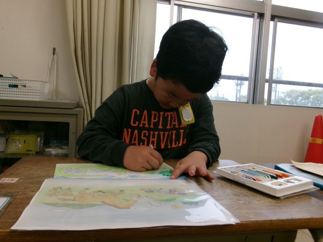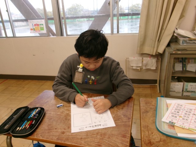 朝の時間、それぞれがやるべきことに取り組んでいました。静かに本を読んだり、クラブの希望調査や自己紹介カードを書いたり、細かいところまで丁寧に色を塗る練習をしたりしました。