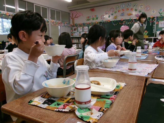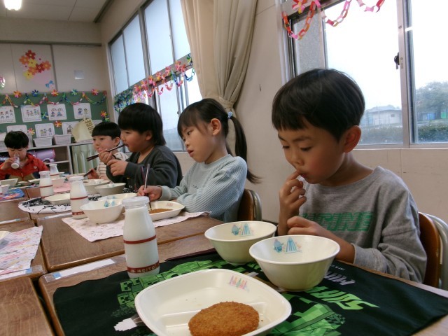 牛乳びんの蓋を開けるのに少し戸惑っている様子が見られましたが、みんな自分の力で開けて飲んでいました。