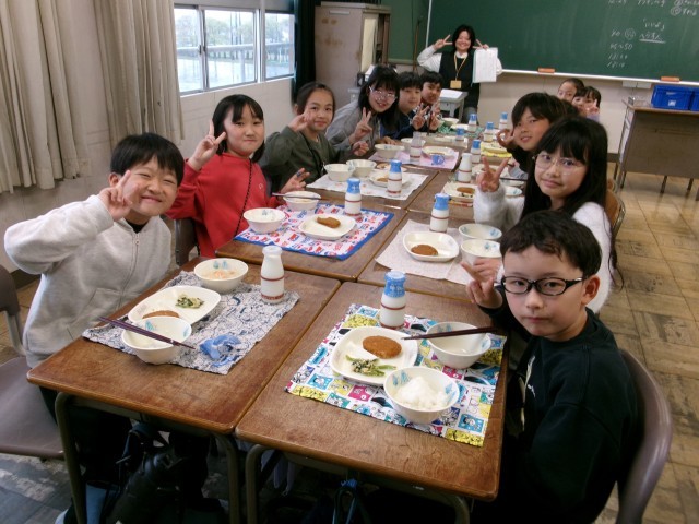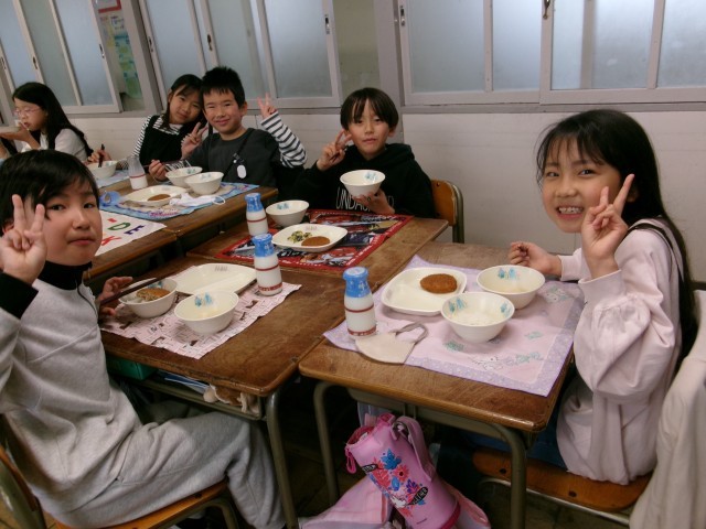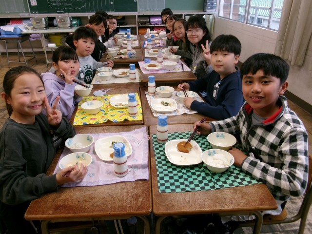 4年生になってはじめての給食。会話をたのしみながら、いただきました。