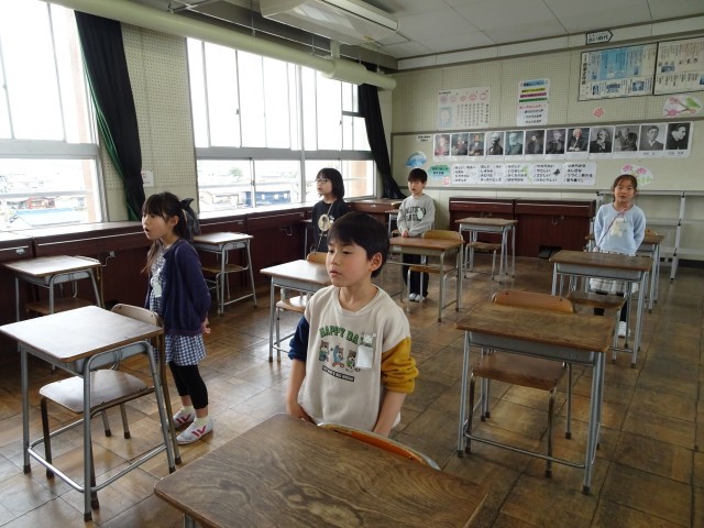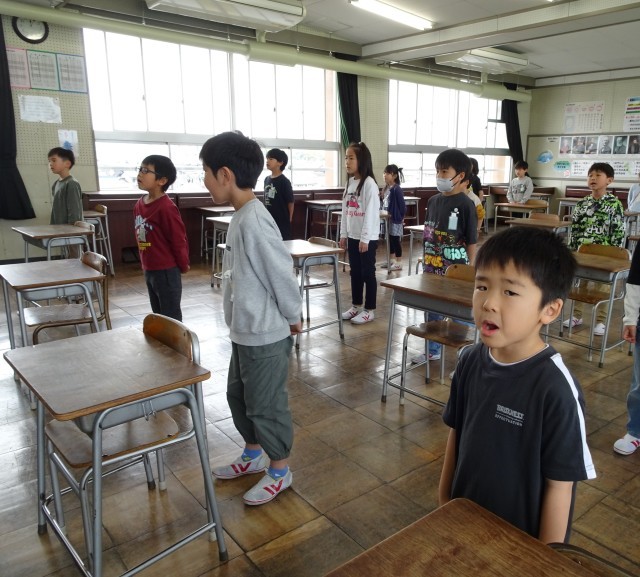 1学期はじめての音楽の授業。新しい学級になって初めての歌声を出しやすい校歌を歌いました。大きな声で歌うことができました。