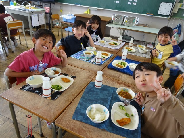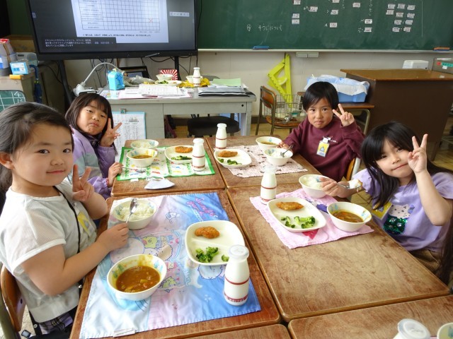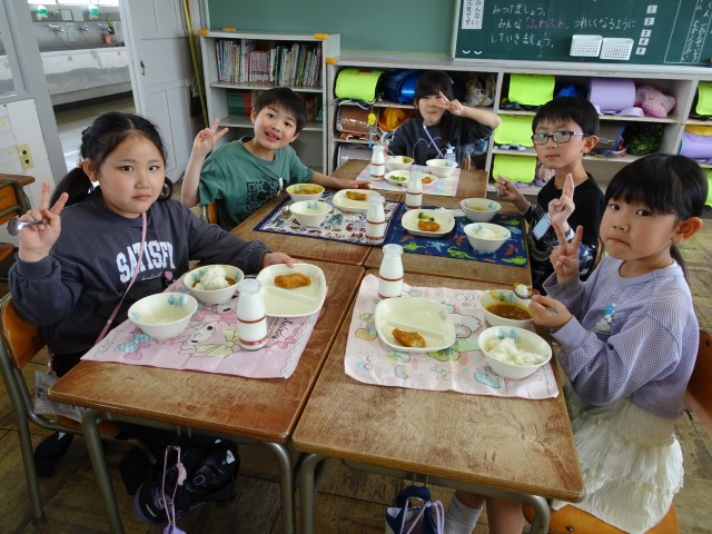 2年生2回目の給食。準備から片付けまで落ち着いてできました。