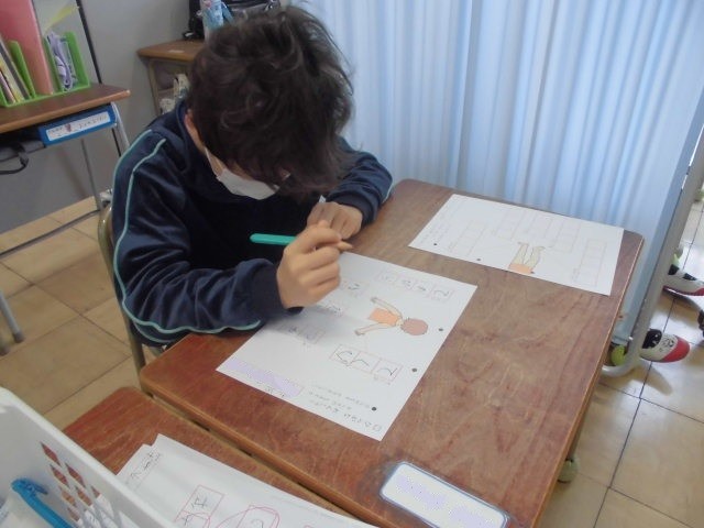 2年生は国語。ひらがなの練習をしています。力の加減を上手にできるようになってきました。