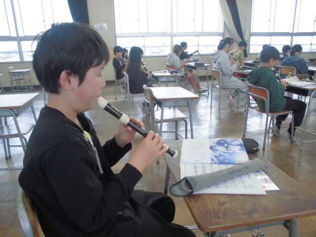 6年生は音楽。アラジンの曲やアニメソングなど、リコーダーで演奏できる曲を選んでいます。