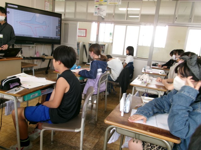 線対称な図形を書きました。どうすると、図形を正しく書くことができるのか説明することもできました。