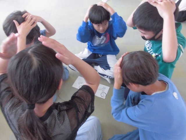 4年生は学年カルタ大会です。カルタの内容は交通安全とか?