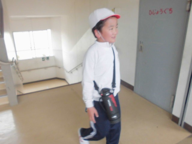 5年生は体育から帰ってきたところでした。運動直後で顔がほてっていましたね。