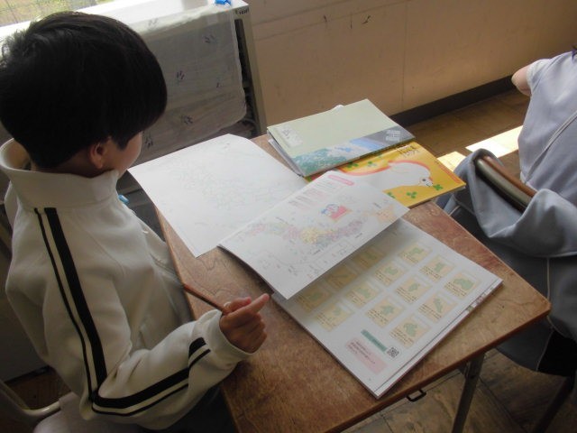 6年生は連絡帳を書いています。この後、写生の絵をかく場所を探しに行きます。