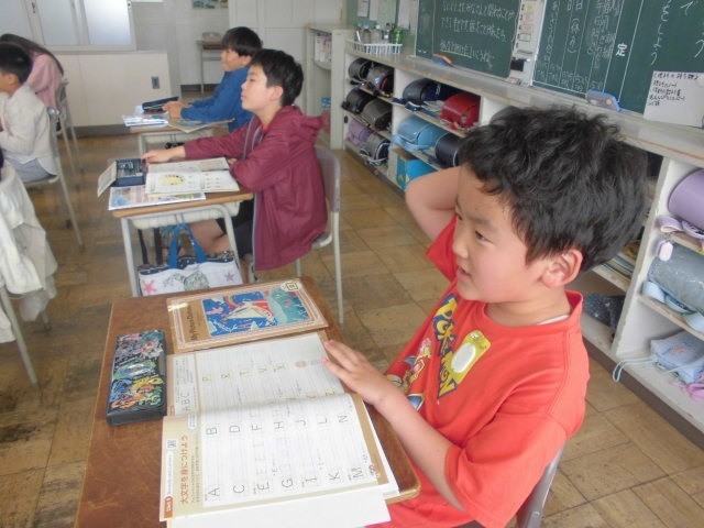 5年生は英語。スポーツの言い方を練習しています。「相撲」は「SUMO」でしたね。
