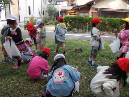 秋をみつけにいったよ。その2【10月9日(金)の1年生】 公開日 2015/10/09 更新日 2015/10/09 1年 生活科で秋見つけに出かけました。白山社にどんぐりやまつぼっくりがたくさん落ちていました。袋にいっぱい拾うことができました。