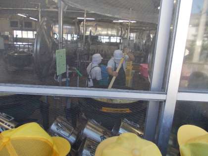 今日は、給食センターを見学させていただきました。給食を作っている様子を真剣に見ていました。子どもが18人ほど入ることができる鍋の大きさに驚きました。
