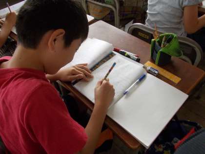 算数の授業【10月15日(木)の5年生】 公開日 2015/10/15 更新日 2015/10/15 5年 算数の授業で通分を勉強しました。みんな真剣に問題に取り組んでいました。ノートもしっかり書いています。