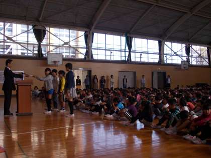 後期役員任命式 10月19日(月)の6年生 公開日 2015/10/19 更新日 2015/10/19 6年 今日の学校集会で後期役員任命式がありました。その後、前期児童会役員から引き継ぎのあいさつがありました。小学校生活残り半年、一人一人が学校のため全校のために何ができるかを考えながら、行動できるといいですね。期待しています!
