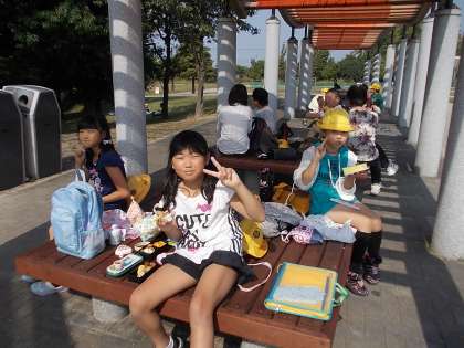 おうちの方の愛情いっぱいのお弁当を、みんなおいしくいただきました。