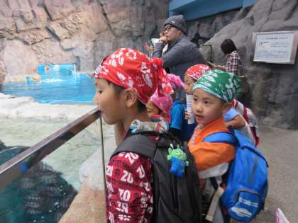 今日は校外学習で名古屋港水族館に行きました。イルカのショーでは、イルカの大迫力の技に大興奮でした。1年生の子とペアになって館内を見回るときには、お兄さんお姉さんとして、1年生の子に優しい笑顔で声をかける姿が見られました。