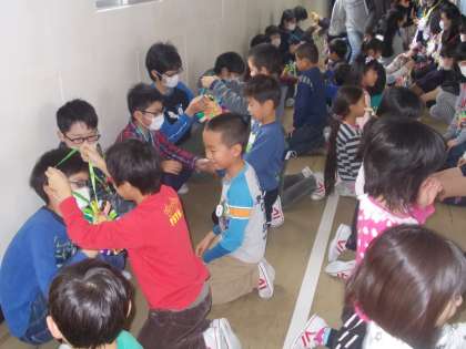 6年生を送る会 その1【3月9日(水)の6年生】 公開日 2016/03/09 更新日 2016/03/09 6年 今日は、6年生を送る会がありました。 はじめに、2年生の子からすてきな首飾りをもらいました。