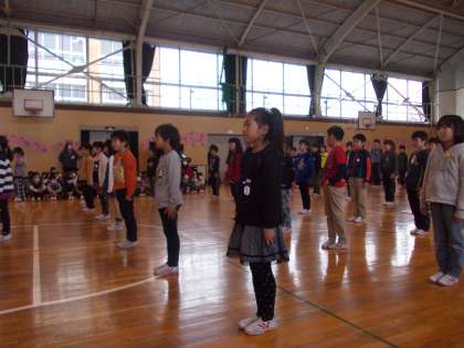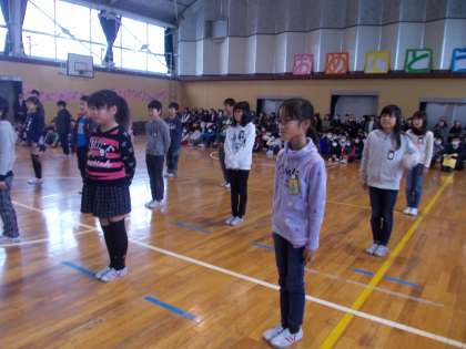 今日は、6年生を送る会が開かれました。いつもお世話になっているお礼の気持ちや感謝の気持ちを言葉や踊りで伝えました。