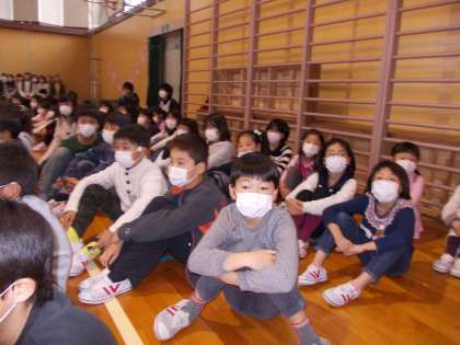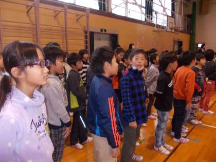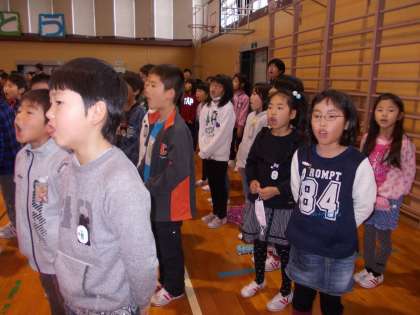 6年生に感謝の気持ちを伝えました(その2)【3月9日(水)の3年生】 公開日 2016/03/09 更新日 2016/03/09 3年 他の学年の出し物の真剣に見ることができました。最後は「ありがとうの花」を歌って会を終えました。素敵な会でした。