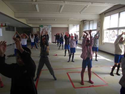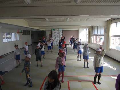体育の授業でも、踊りを練習していました。みんなよく覚えてたね。