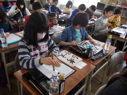 書写【3月10日(木)の5年生】 公開日 2016/03/10 更新日 2016/03/10 5年 5年生最後の習字がありました。習字紙が真っ黒になるまで練習をしていた子もいました。頑張って練習したね。