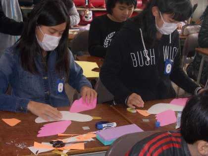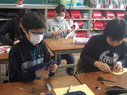卒業式会場飾りを作りました。その2【3月10日(木)の6年生】