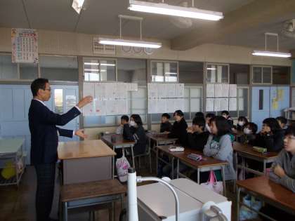 校長先生から 3月11日(金)の6年生 公開日 2016/03/11 更新日 2016/03/11 6年 今日は、校長先生から中学校に向けてのお話をしていただきました。友達、勉強、部活など中学校生活について紹介していただき、みんな真剣な表情で話を聞くことができました。