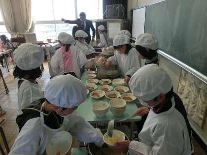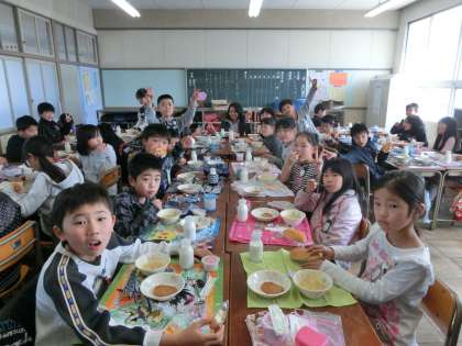 4年生になってから初めての給食!係のみんなで協力して準備をして、おいしく、楽しく給食の時間を過ごしました。