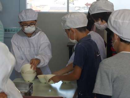 給食スタート【4月11日(月)の5年生】 公開日 2016/04/11 更新日 2016/04/11 5年 今日から給食が始まりました。当番が手際よくつけ分け、みんなで配りました。みんなで美味しくいただきました。