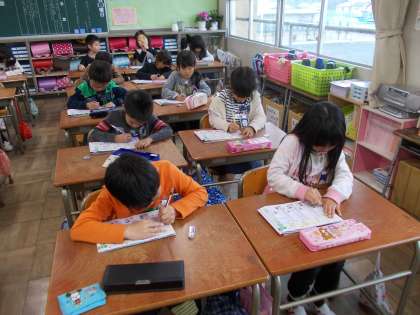 今日は、漢字ドリルで新しい漢字の学習をしました。2年生になって画数も増えてきましたが、みんなていねいに練習に取り組むことができました。