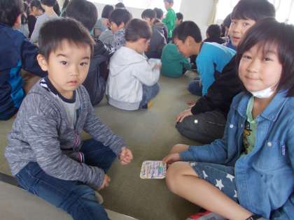 名刺渡し その1【4月14日(木)の6年生】 公開日 2016/04/14 更新日 2016/04/14 6年 1年生のペアの子と顔合わせがありました。一生懸命作った名刺を1年生の子に渡しました。「小さくてかわいい〜」という声がたくさん聞こえてきました。