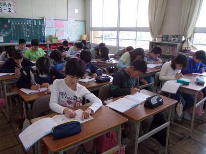 算数の時間に、問題集を使って5年生の復習をしました。ちゃんと覚えていたかな??