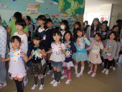 1年生を迎える会 その1【4月15日(金)1年生】 公開日 2016/04/15 更新日 2016/04/15 1年 今日は、児童会行事で1年生を迎える会がありました。 6年生の仲良しペアのおにいさん、おねえさんが教室まで迎えに来てくれ、ペンダントをもらいました。一緒に花のアーチをくぐり、入場しました。 新聞紙を使ったゲームを思い切り楽しみました。