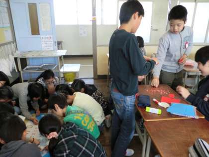 今日の写真は、学級目標の作成の様子です。みんなで折り紙をちぎって最後の仕上げをしました。うーんと手をかけた学級目標みんなで守っていこうね。