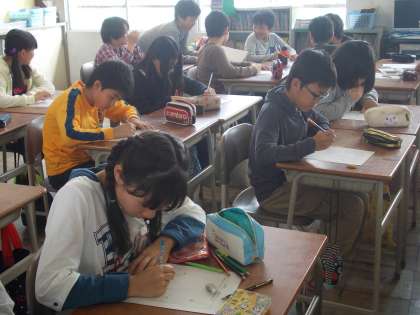 図工の時間 【4月20日(水)の6年生】 公開日 2016/04/20 更新日 2016/04/20 6年 図工の時間に、ぐにゃぐにゃえんぴつを描きました。 色や模様・形を工夫して、世界にひとつだけのオリジナルえんぴつができましたね。