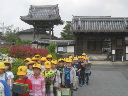 町探検・・・3年生バージョンスタート その1 【4月25日(月)3年生】 公開日 2016/04/25 更新日 2016/04/25 3年 生活科から社会になって初めての外出です。町探検3年生バージョンとして地図を見ながらの探検です。学校より南・西方面に行きました。大日比野神社、運善寺、ちびっこ広場などを巡ってきました。地図記号を見たとき、建物に似ていたり、意味があったりしてこの記号になったと知り、もっと他の記号はないかと調べる子も増えてきそうです。