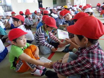 おにいさんおねえさんになったね!その1【4月26日(火)の2年生】 公開日 2016/04/26 更新日 2016/04/26 2年 今日は、1年生の子と名刺交換をしたり、低学年広場で元気いっぱい遊んだりしました。名刺交換では、「○○です。これからよろしくね。」とあいさつをして、握手をしました。