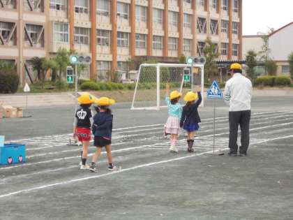 安全教室その1【4月27日(水)の1年生】 公開日 2016/04/27 更新日 2016/04/27 1年 交通安全教室で、道路の歩き方や横断歩道の渡り方について教えていただきました。信号をよく見て、手を挙げて横断することができました。普段も、一人一人が車に気をつけて、歩けるようにしていきたいと思いました。