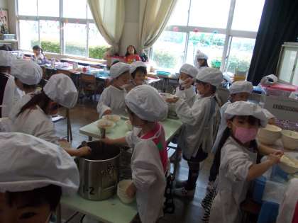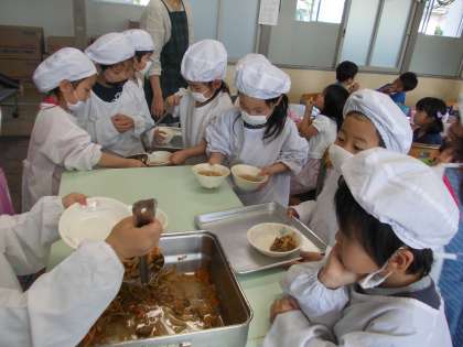 みんなで協力!!【4月27日(水)1年生】 公開日 2016/04/27 更新日 2016/04/27 1年 給食の時間、みんなで協力して配膳できるようになってきました。自分の仕事が終わったら、友達の仕事を進んで手伝う姿も見られるようになり、感心します。何でも楽しんで取り組めるのが1年生のよいところだと思います。これからが楽しみです。 3枚目の写真は、2年生の仲良しペアさんと遊んでいるところです。